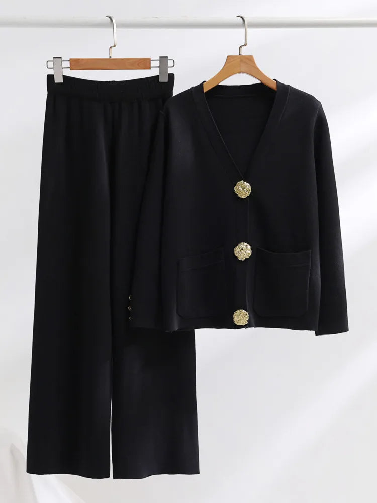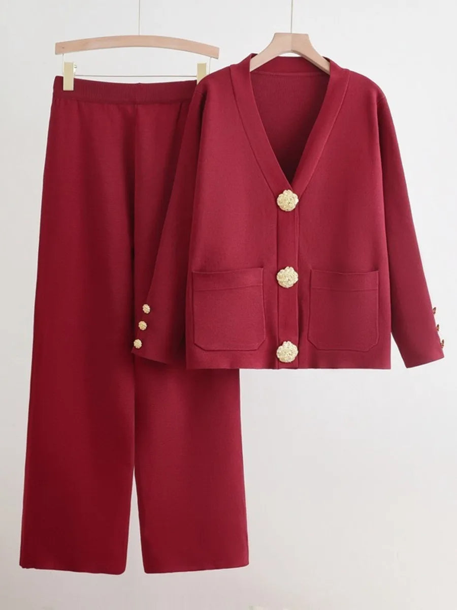 Marion - Conjunto de Dos Piezas de Punto y Cuello en V
