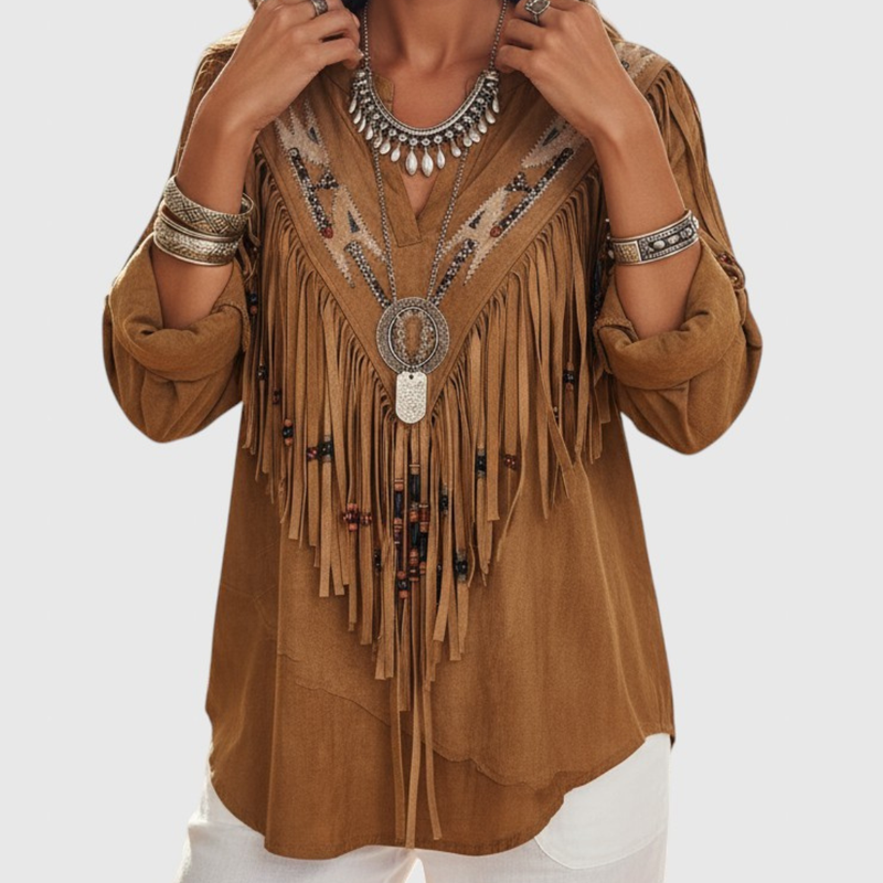 Neoma - Blusa Vintage con Estampado Etnico