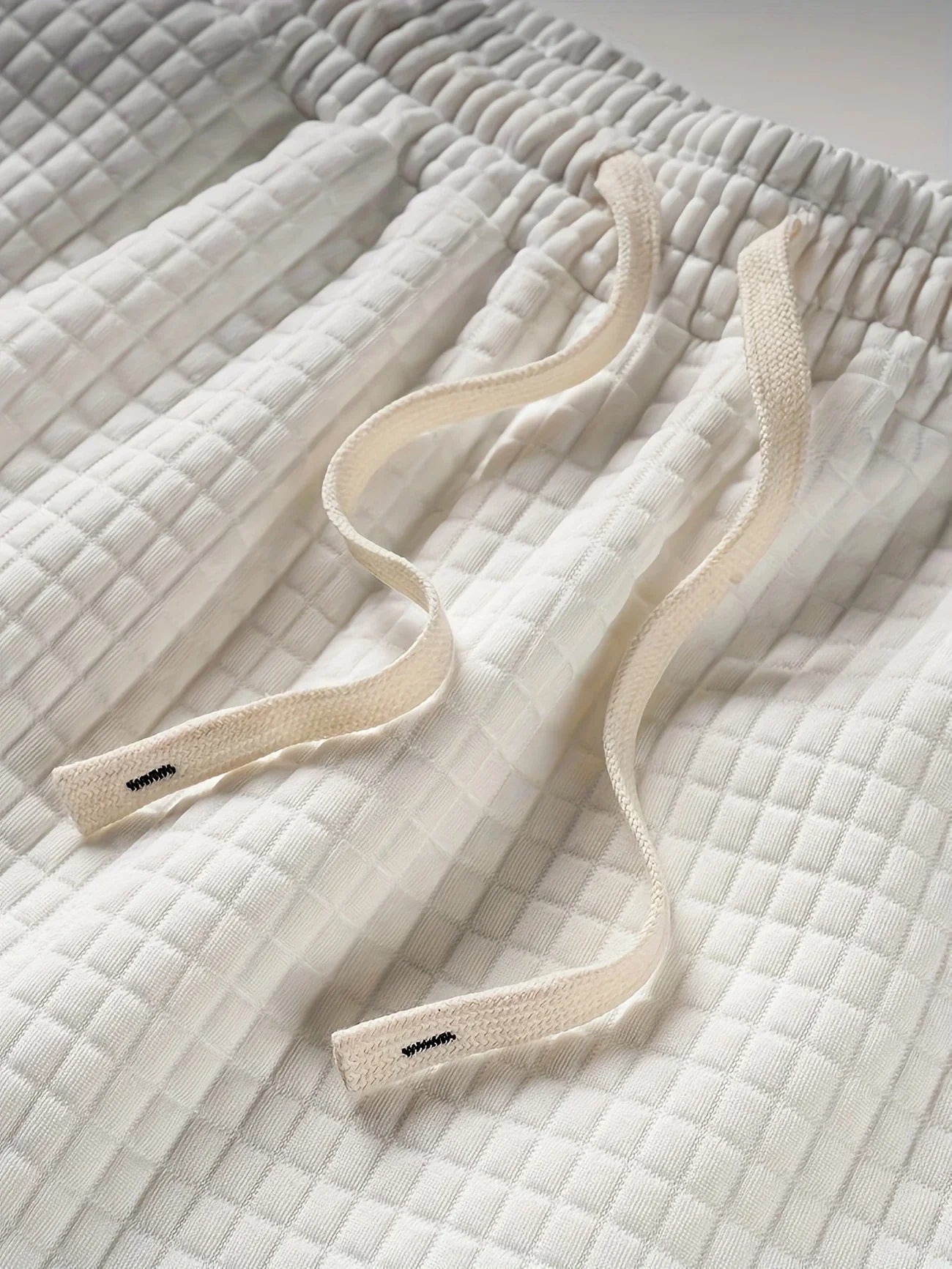 ✅Estilo moderno: Los pantalones cortos con cintura elástica y cordón Nikifor ofrecen un patrón texturizado único que combina estilo y comodidad. Con un aspecto limpio y estructurado, están diseñados para destacar sin dejar de ser lo suficientemente versátiles como para llevarlos tanto en looks informales como deportivos. Su superficie con diseño de rejilla realza sutilmente tu silueta con una textura visual.